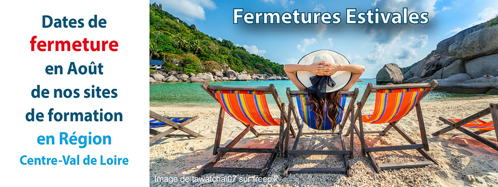 16 juillet 2025Nos sites de formations seront fermés une partie du mois d’Août.