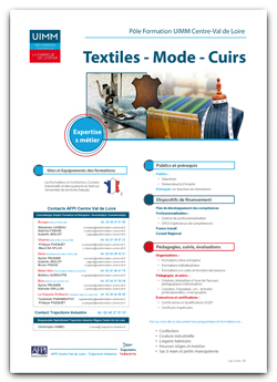 La branche Textiles Mode et Cuirs du Pôle Formation UIMM Centre-Val de Loire contribue à la Formation et l’Emploi de ce secteur.