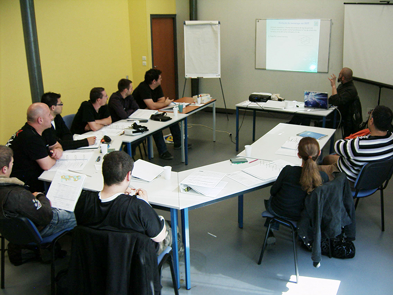 Le formateur et les stagiaires en salle de formation